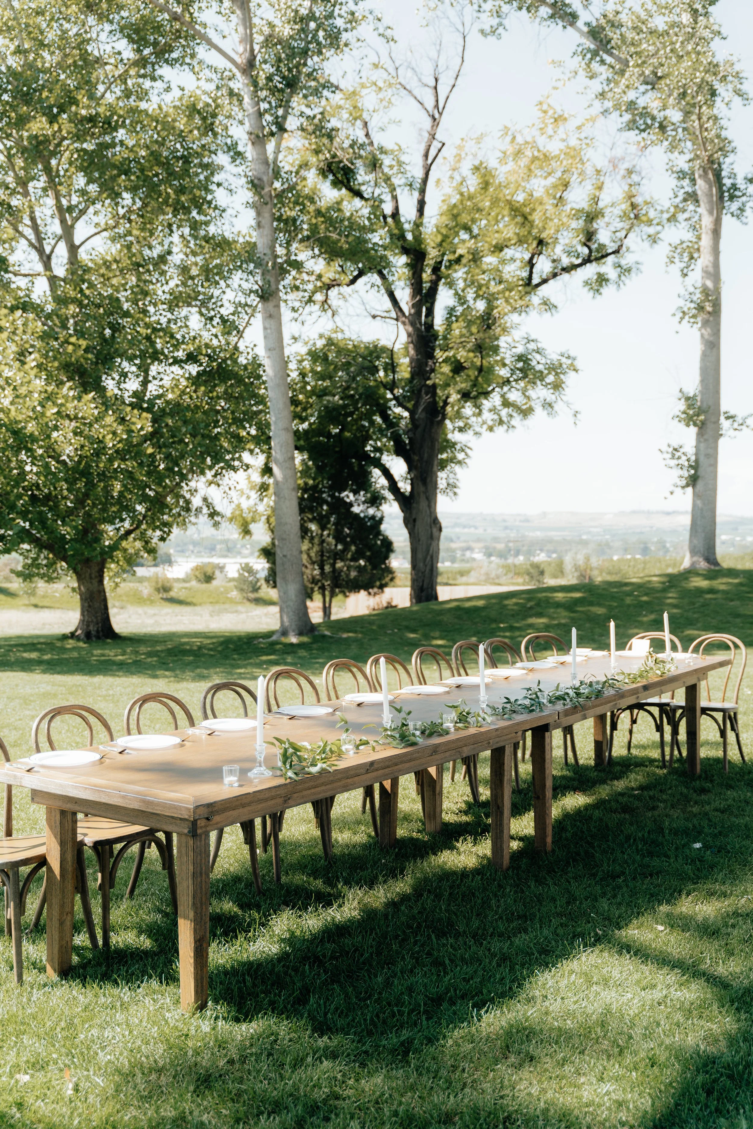 Our Vineyard Park is landscaped with large shade trees. Enjoy panoramic views of the surrounding orchards and vineyards, framed by picturesque sunsets that will make for an unforgettable event.